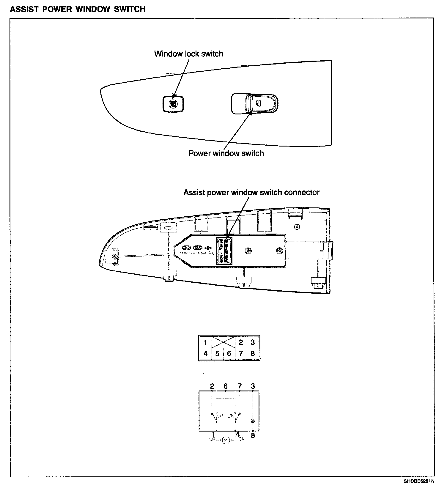 Power Window Main Switch (Assist Power Window Switch) - Components: