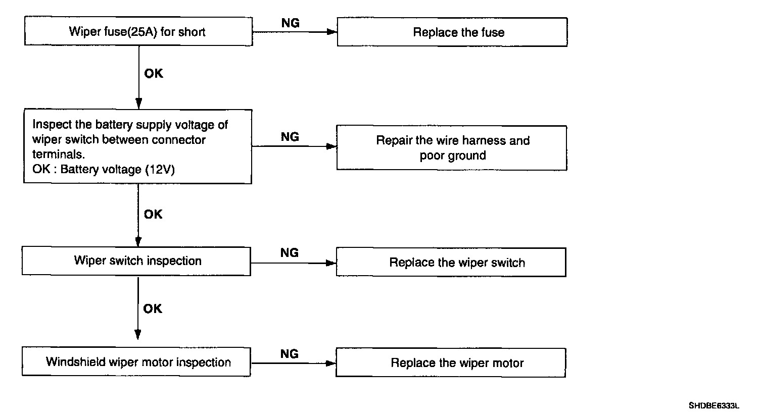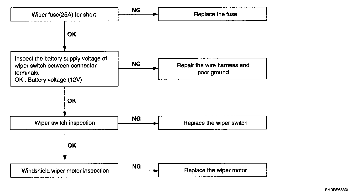 Wiper low and wiper high do not work.