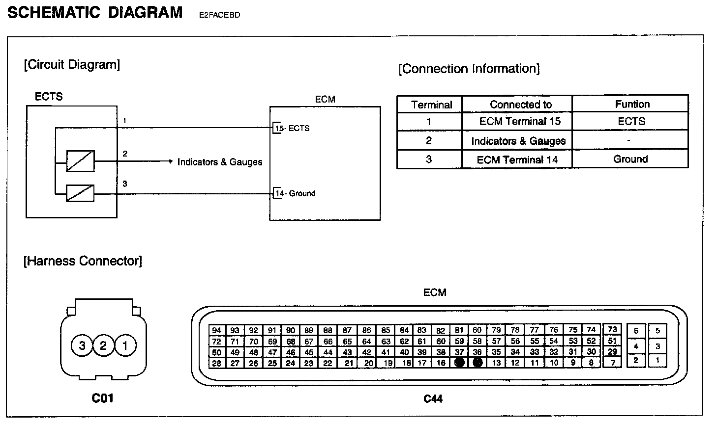 NOTE: If any DTCs relating to ECTS are stored, do ALL REPAIRS associated with those codes before proceeding with further troubleshooting
