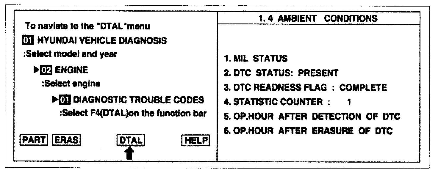 2. Press F4 (DTAL) to select DTC information from the DTCs menu.