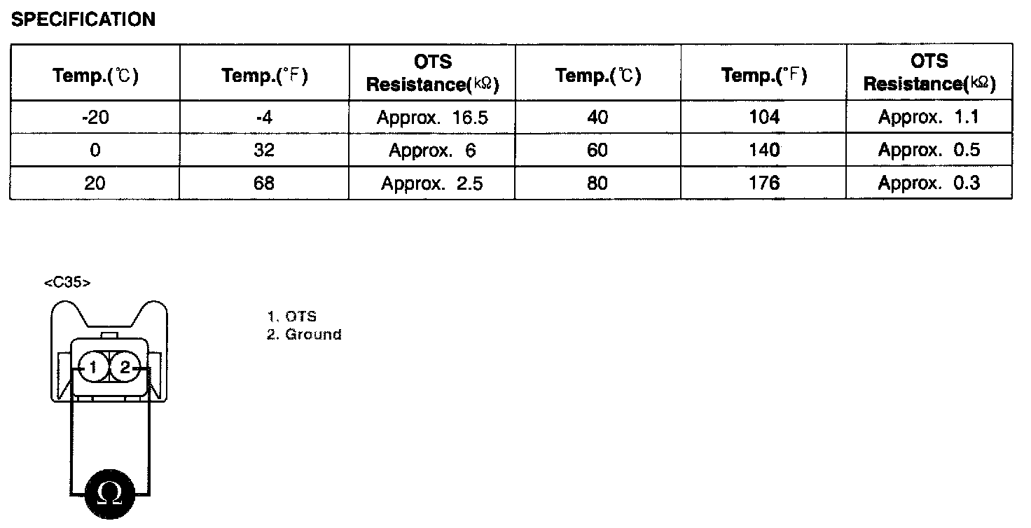 3. Measure resistance between terminals 2 of the OTS harness connector and chassis ground.