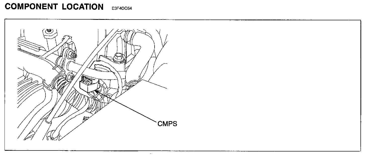 The Camshaft Position Sensor (CMPS) is a sensor that detects the compression TDC of the NO.1 cylinder. The CMPS consists of a hall type sensor and a target on the end of the intake camshaft. When the target triggers the sensor, the sensor voltage is 5 V. If not, the sensor voltage is 0 V. These CMPS signal is sent to the ECM and the ECM uses the CMPS signal for synchronizing the firing of sequential fuel injectors.