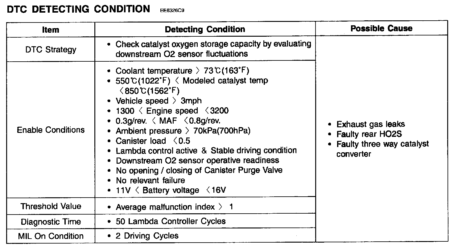 DTC P0420 CATALYST SYSTEM EFFICIENCY BELOW THRESHOLD (BANK 1)GENERAL DESCRIPTION