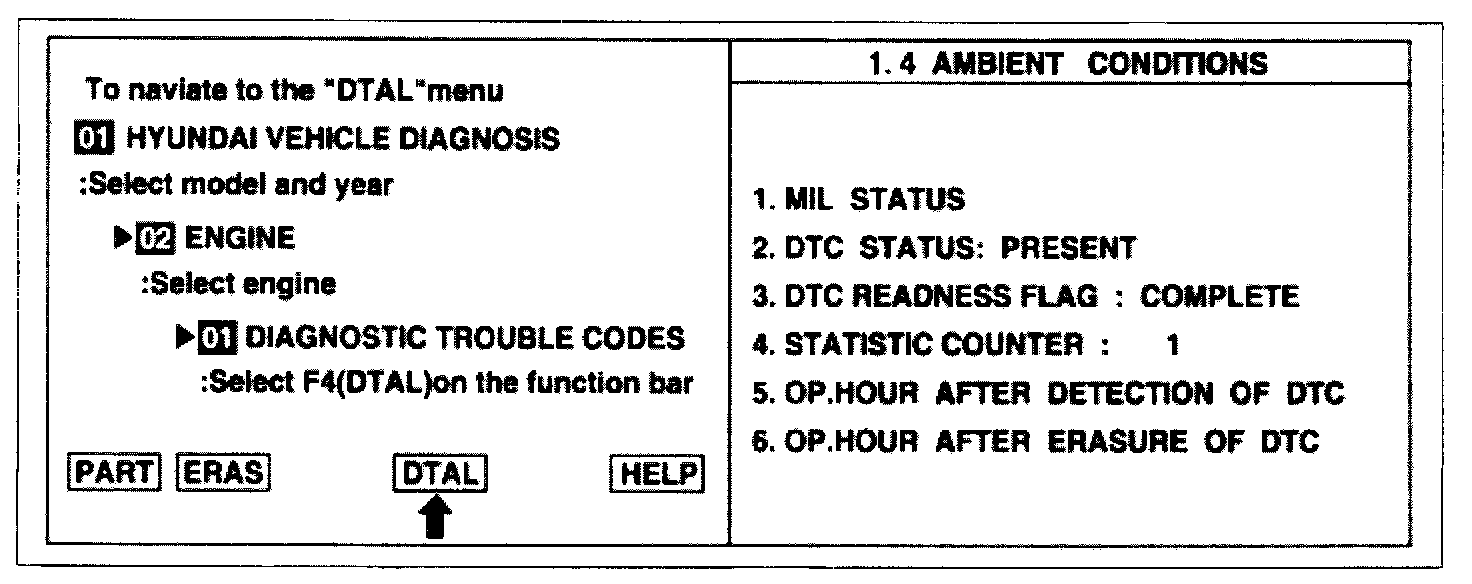 2. Press F4 (DTAL) to select DTC information from the DTCs menu.