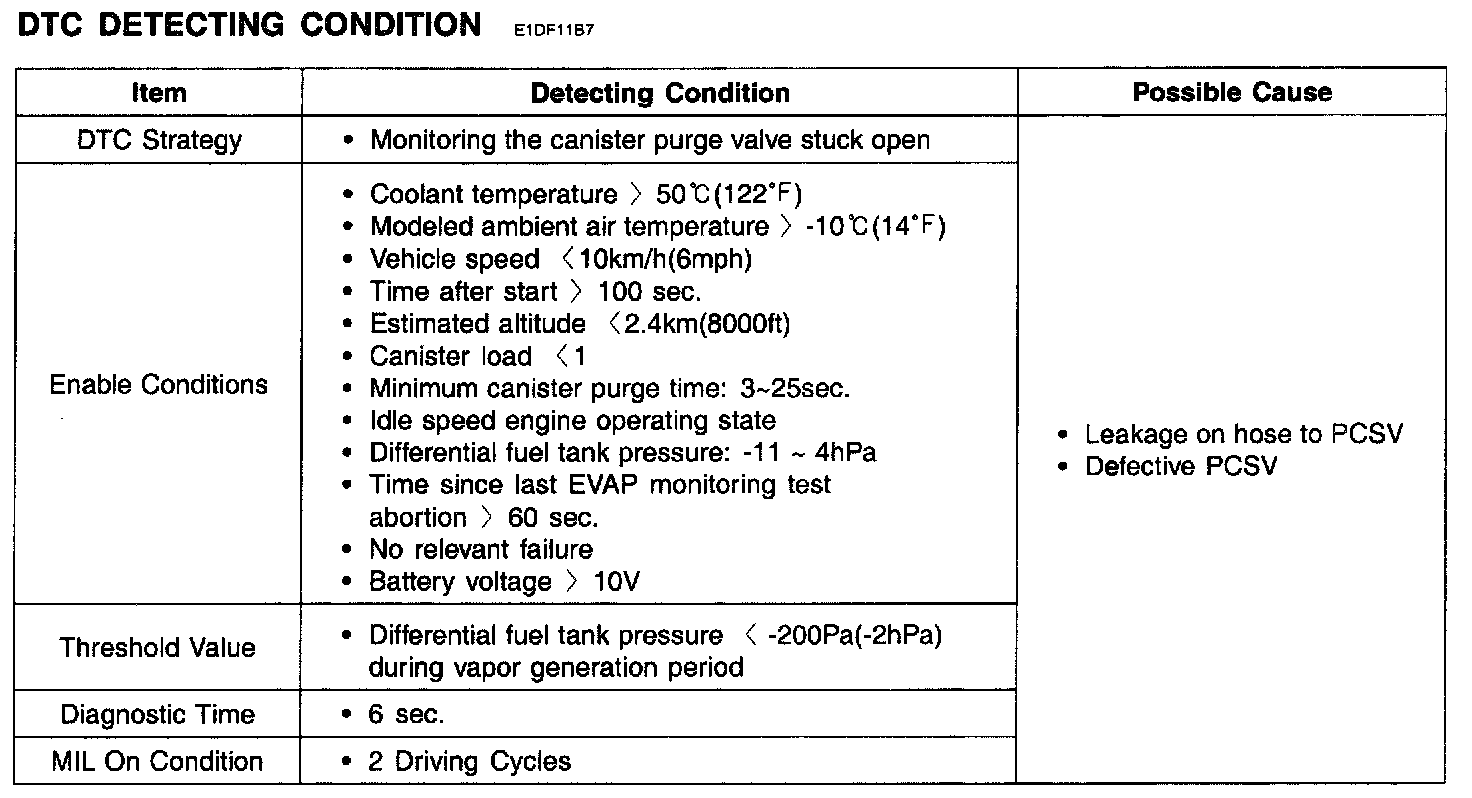 3. Perform "EVAP. LEAKAGE TEST" mode referring to enable conditions as below