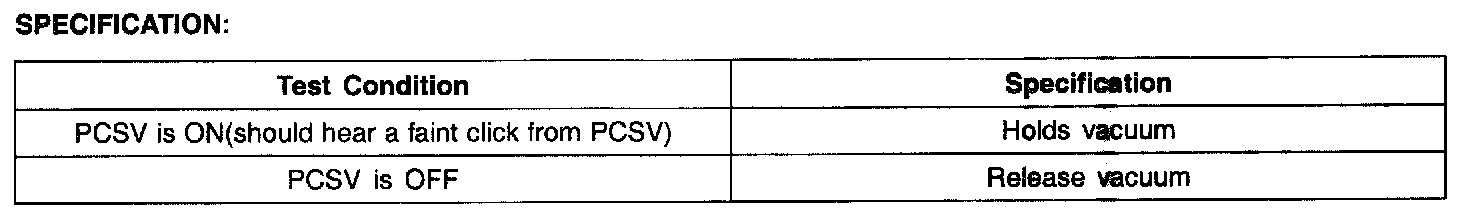- If OK, thoroughly check fuel vapor hoses and hose clamps between PCSV and intake manifold. Repair as necessary. If OK, test with a new PCSV and check for proper operation. If problem is corrected, replace PCSV and go to "Verification of Vehicle Repair" procedure