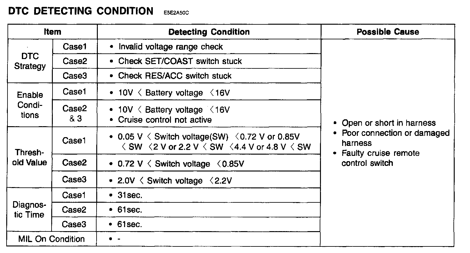 ECM sets DTC P0564 if the ECM detects signal from switch exceeds threshold value.