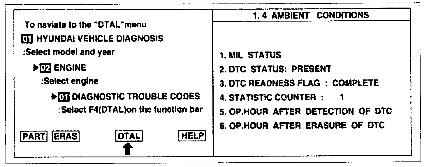 2. Press F4 (DTAL) to select DTC information from the DTCs menu.