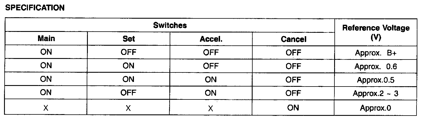 2. Measure cruise remocon switch resistance as follows. (Component side).