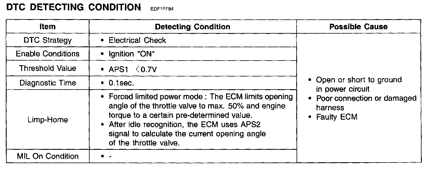 The ECM provides a 5 volt reference voltage to the Acceleration Position Sensor 1 (APS 1). The ECM monitors reference voltage deviation from the power supply circuit of the APS 1.