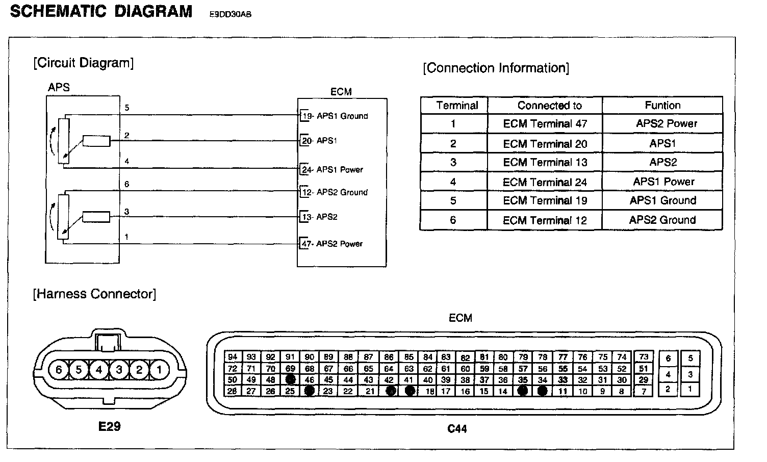 2. Disconnect APS 2 harness connector.
