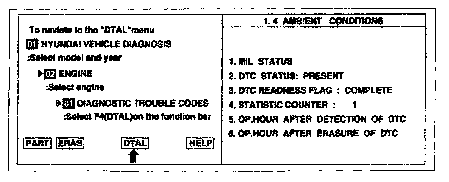 2. Press F4 (DTAL) to select DTC information from the DTCs menu.