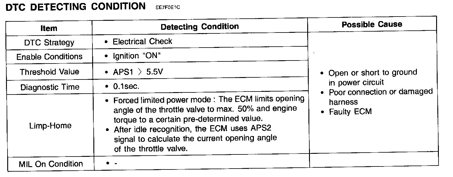 The ECM provides a 5 volt reference voltage to the Acceleration Position Sensor 1 (APS 1). The ECM monitors reference voltage deviation from the power supply circuit of the APS 1.