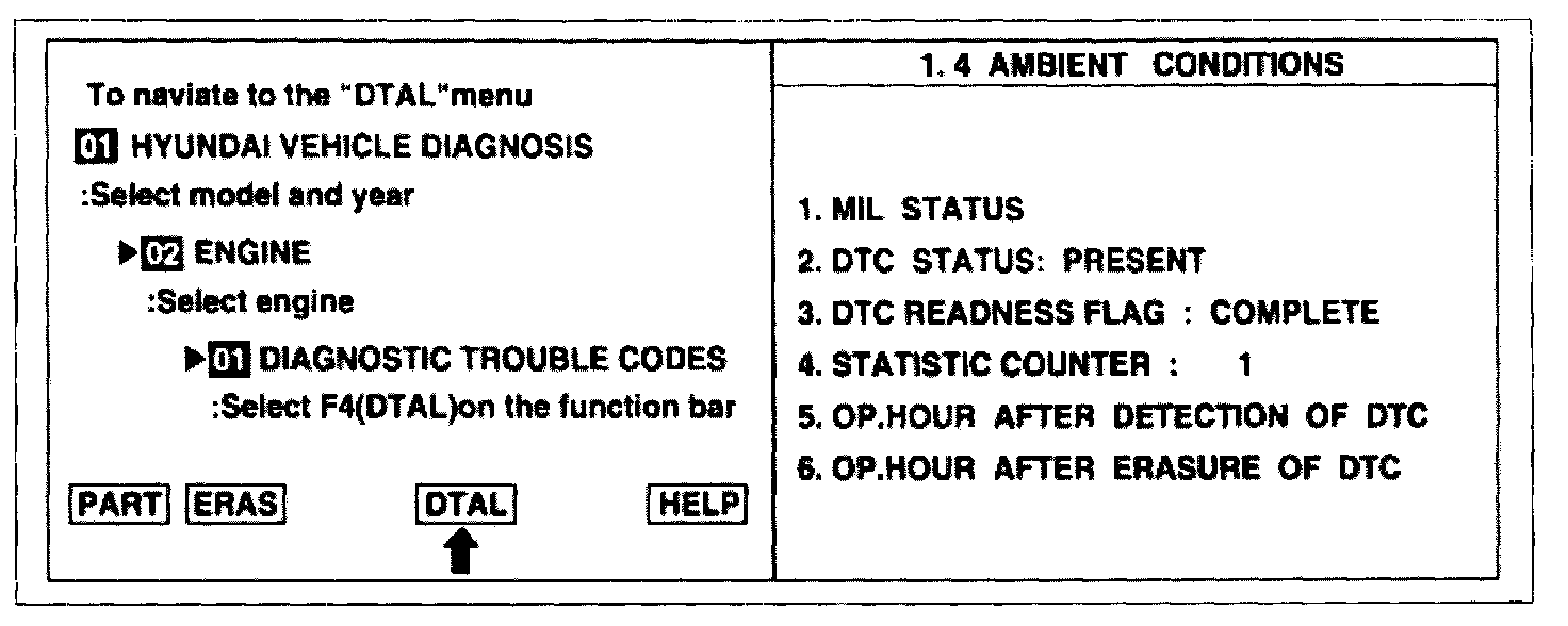2. Press F4 (DTAL) to select DTC information from the DTCs menu.