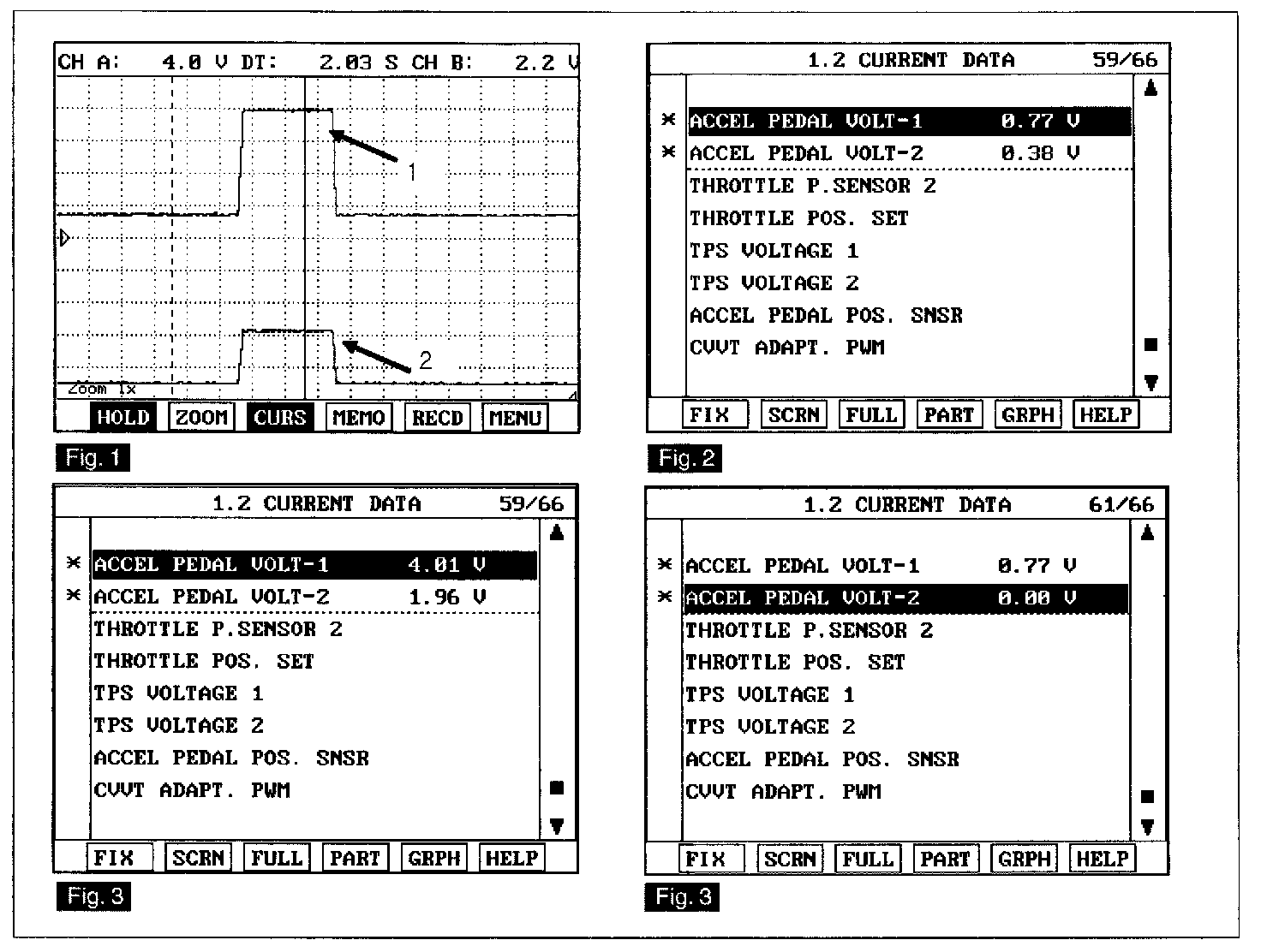 2. With ignition "ON", install Scantool and monitor the "APS 2" parameter on the Scantool data list.