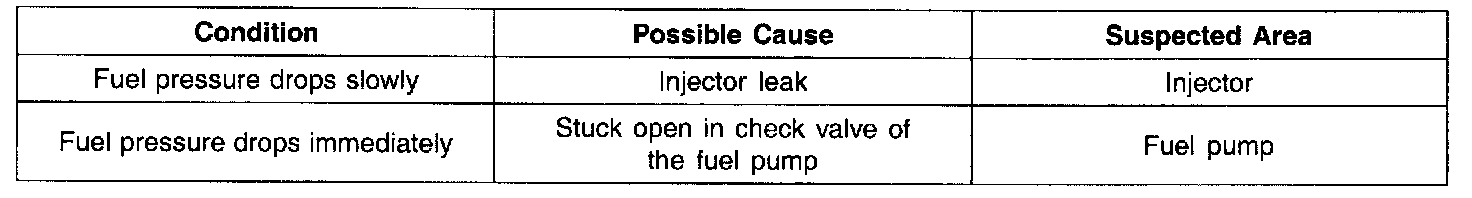 1. Stop the engine and check for a change in the fuel pressure gauge reading.