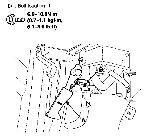 HOOD RELEASE HANDLE REPLACEMENT1. Remove the mounting bolt, then remove the hood release handle (A).