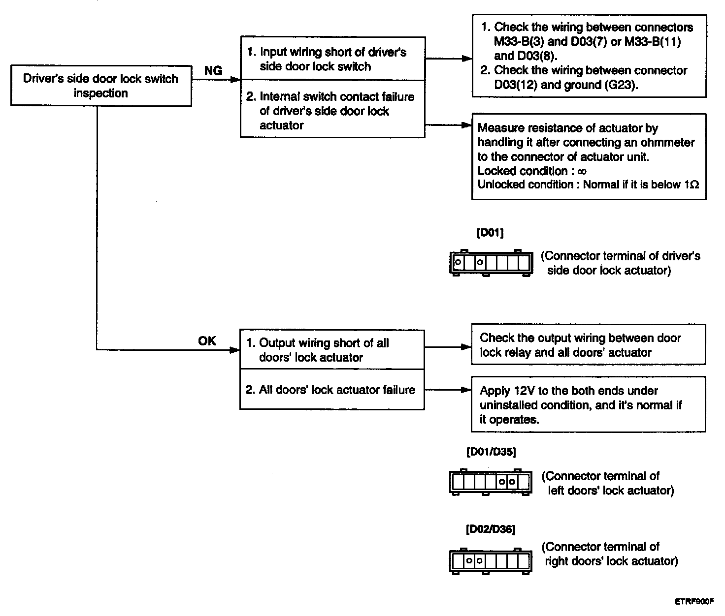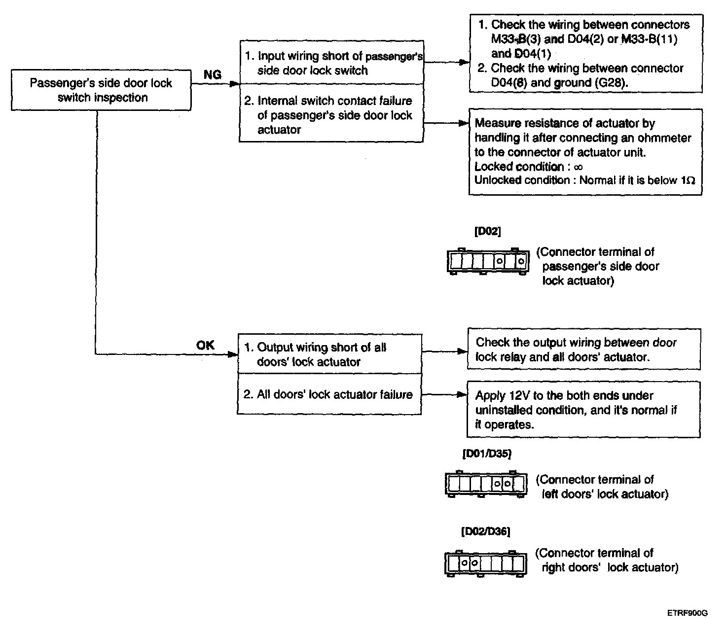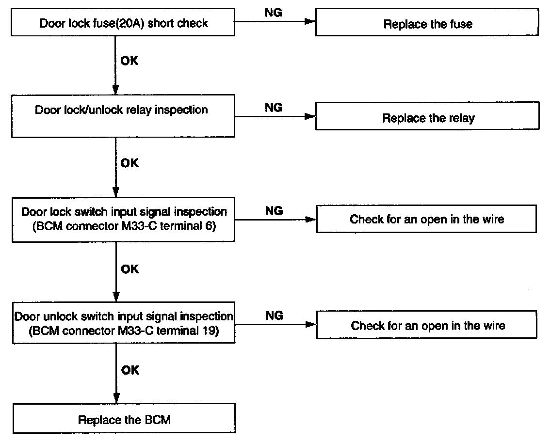 2. Unlock function works but lock function does not work. -> Since door lock relay is malfunction, replace the door lock relay.