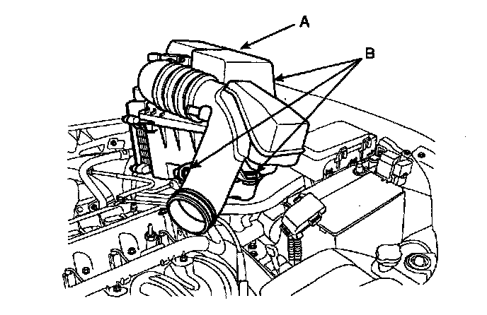 1. Remove air cleaner mounting bolts (B) from the air cleaner mounting bracket and air cleaner body (A).