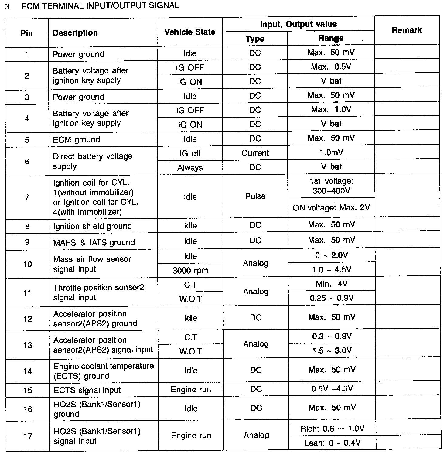 ECM Terminal Input/Output Signal Part 3: