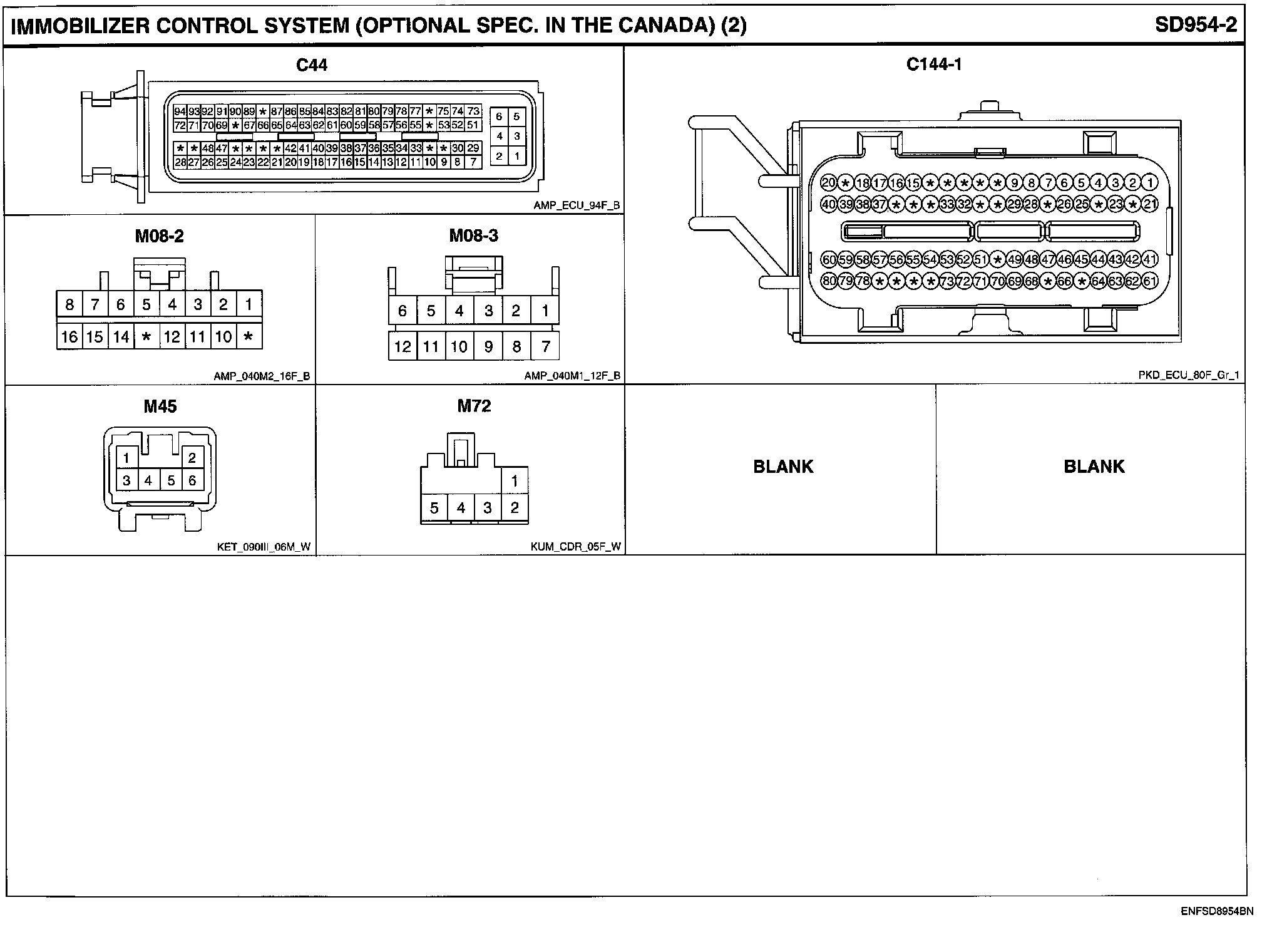 Immobilizer Control Systems (Optional Spec. In The Canada) Connector Pin Outs: