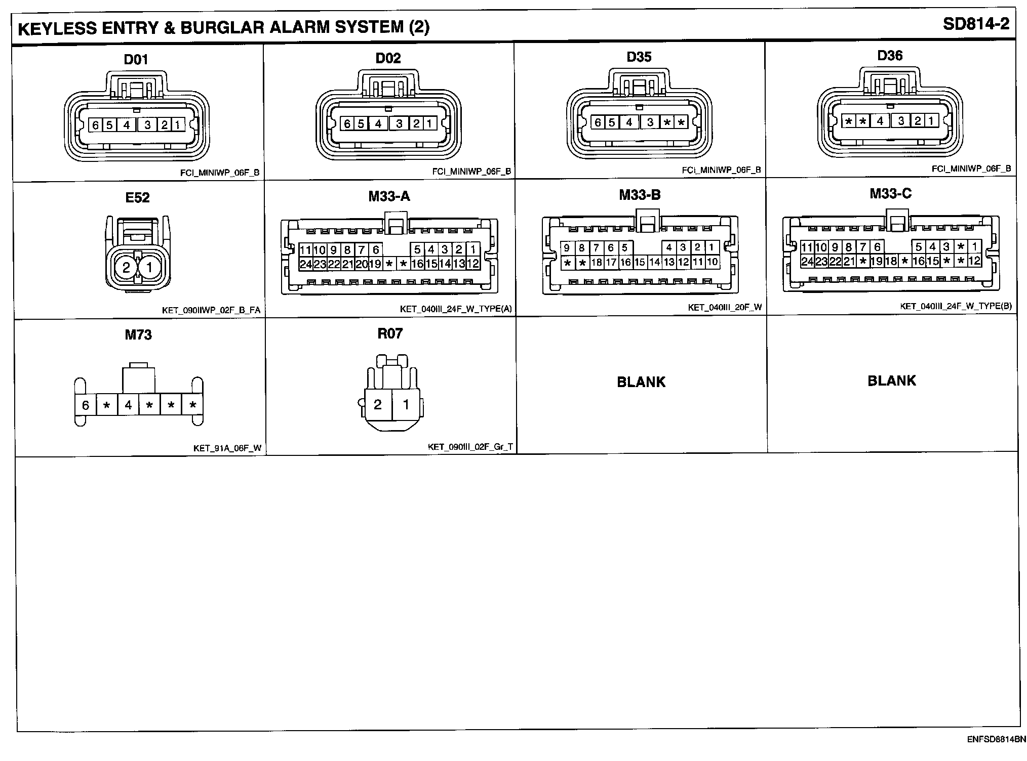 Keyless Entry & Burglar Alarm System Connector Pin Outs: