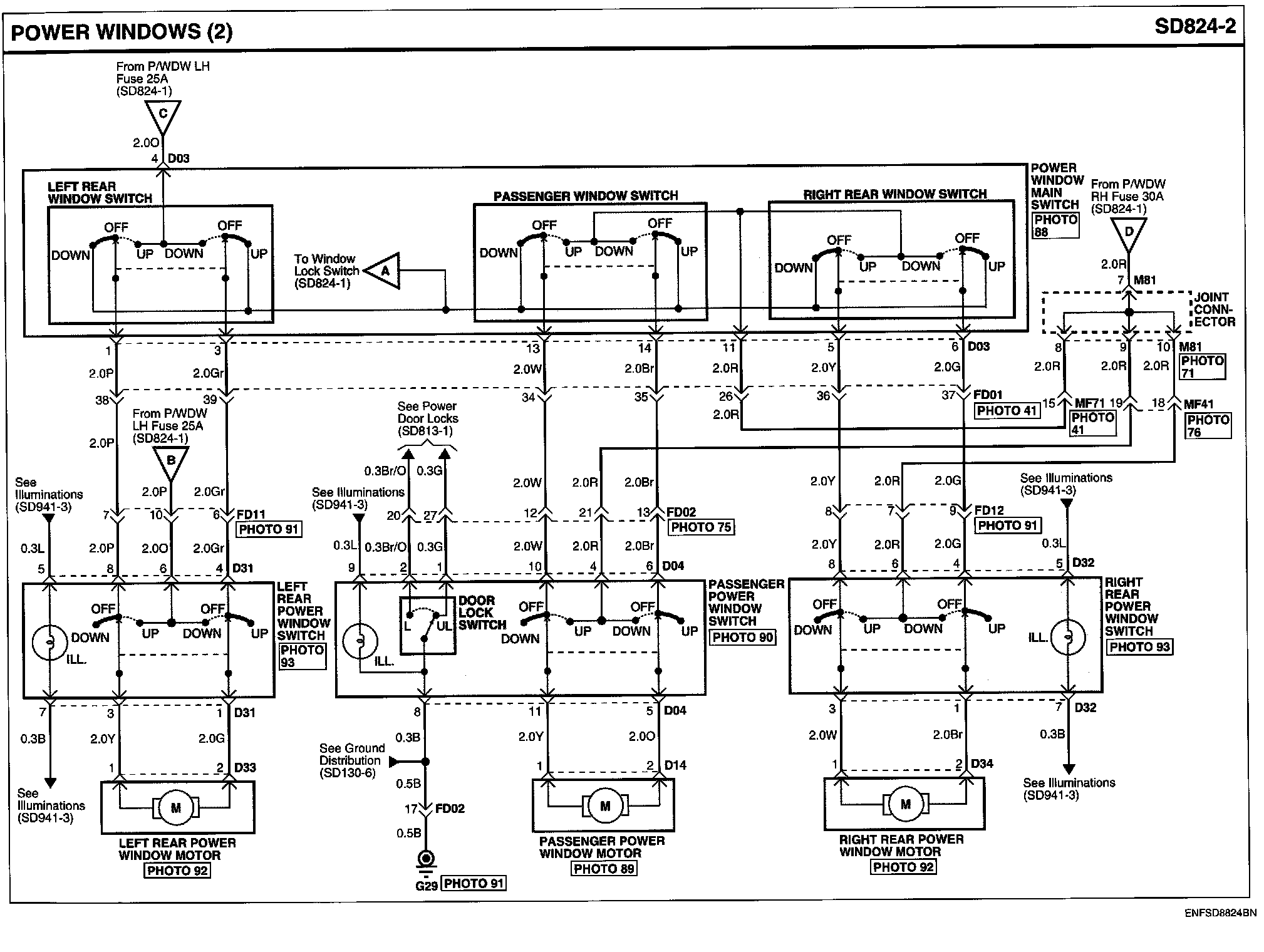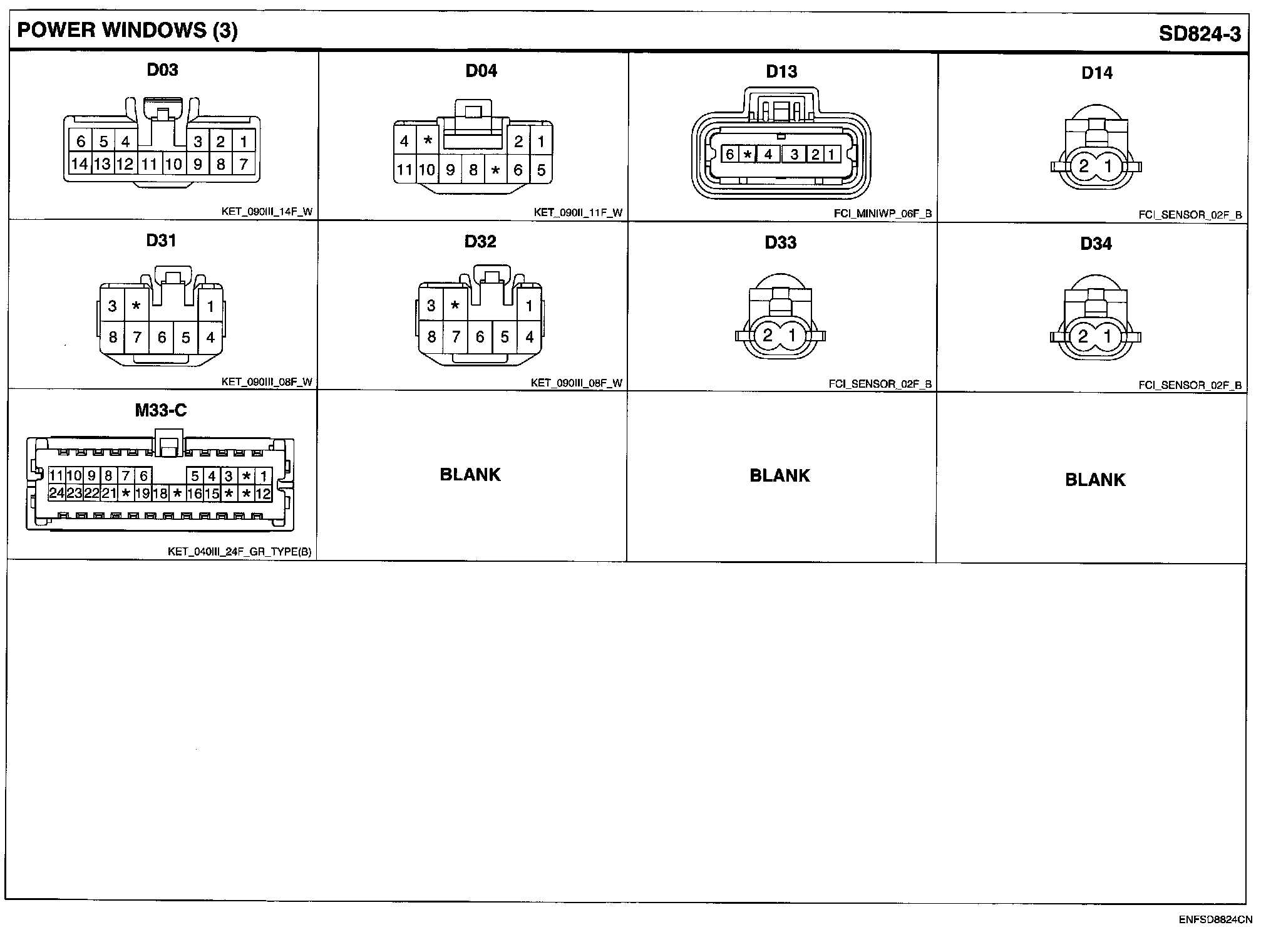 Power Windows Connector Pin Outs: