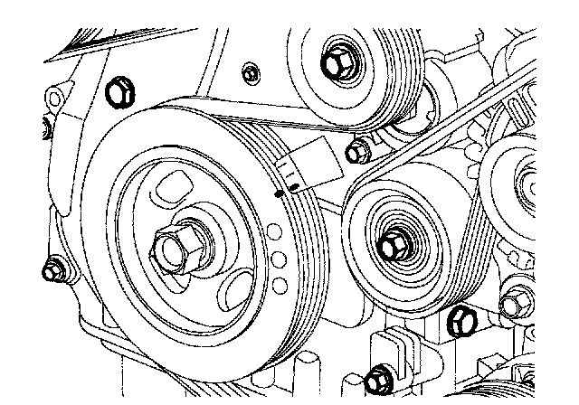 NOTE: Tensioner pulley bolt is left - handed screw