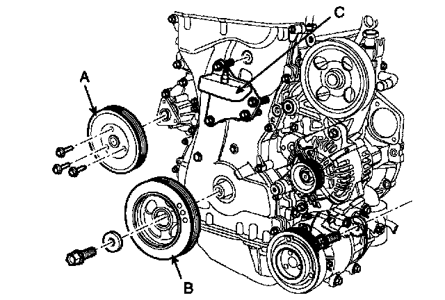 10. Remove the water pump pulley (A).