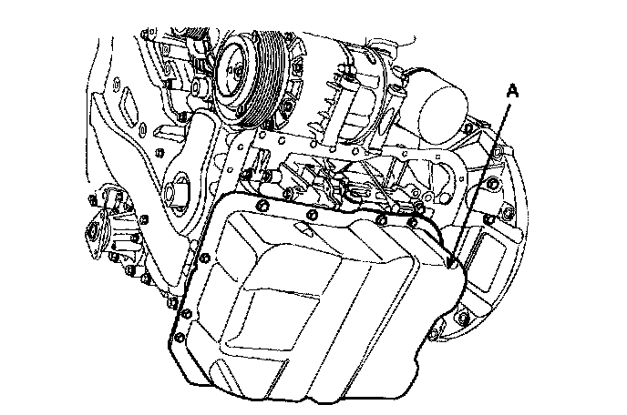 c. Install oil pan (A). Uniformly tighten the bolts in several passes.