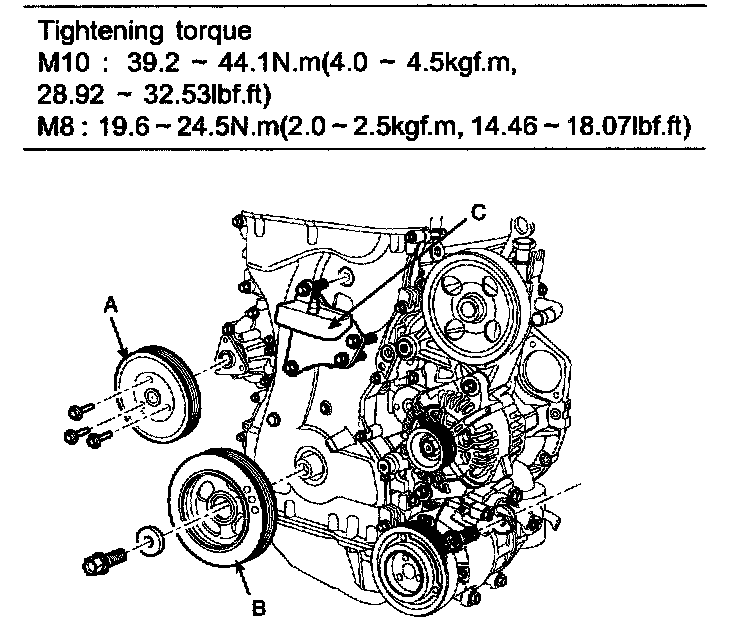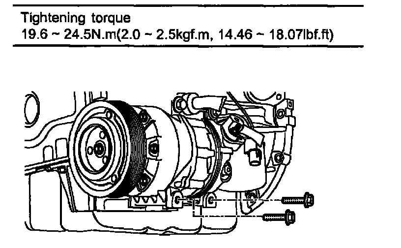 Tightening torque 19.6 - 24.5 Nm (2.0 - 2.5 kgf.m, 14.46 - 18.07 ft. lbs.)