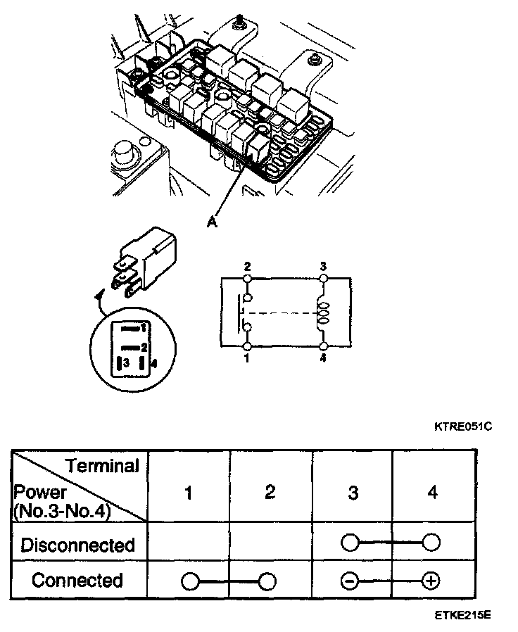 2. There should be continuity between the No.1 and No.2 terminals when power and ground are connected to the No.3 and No.4 terminals.
