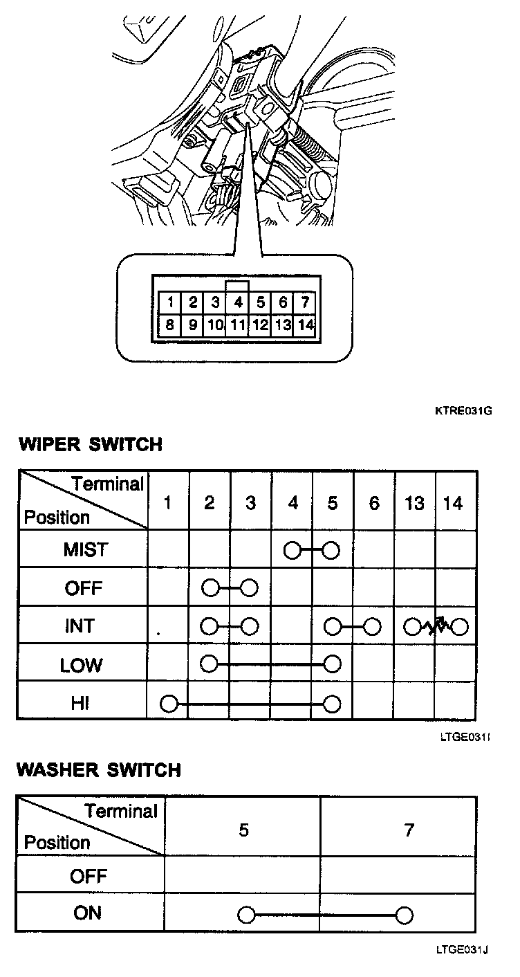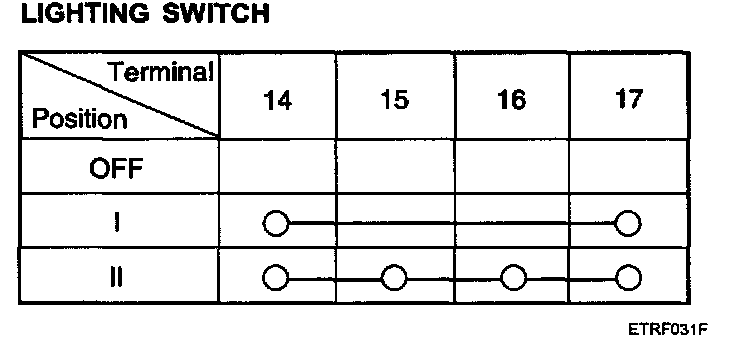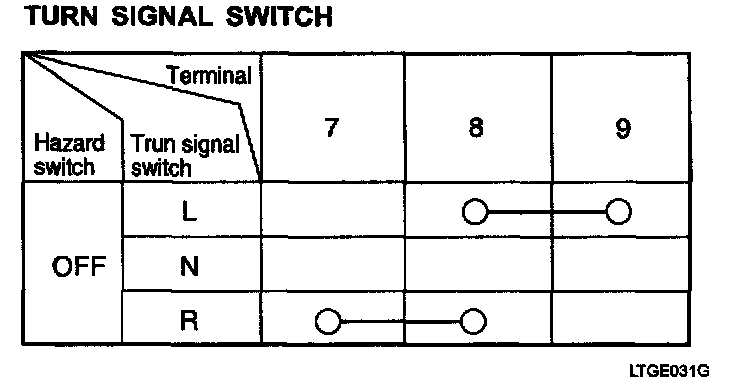 With the multi function switch in each position, make sure that continuity exists between the terminals. If continuity is not as specified, replace the multi-function switch.