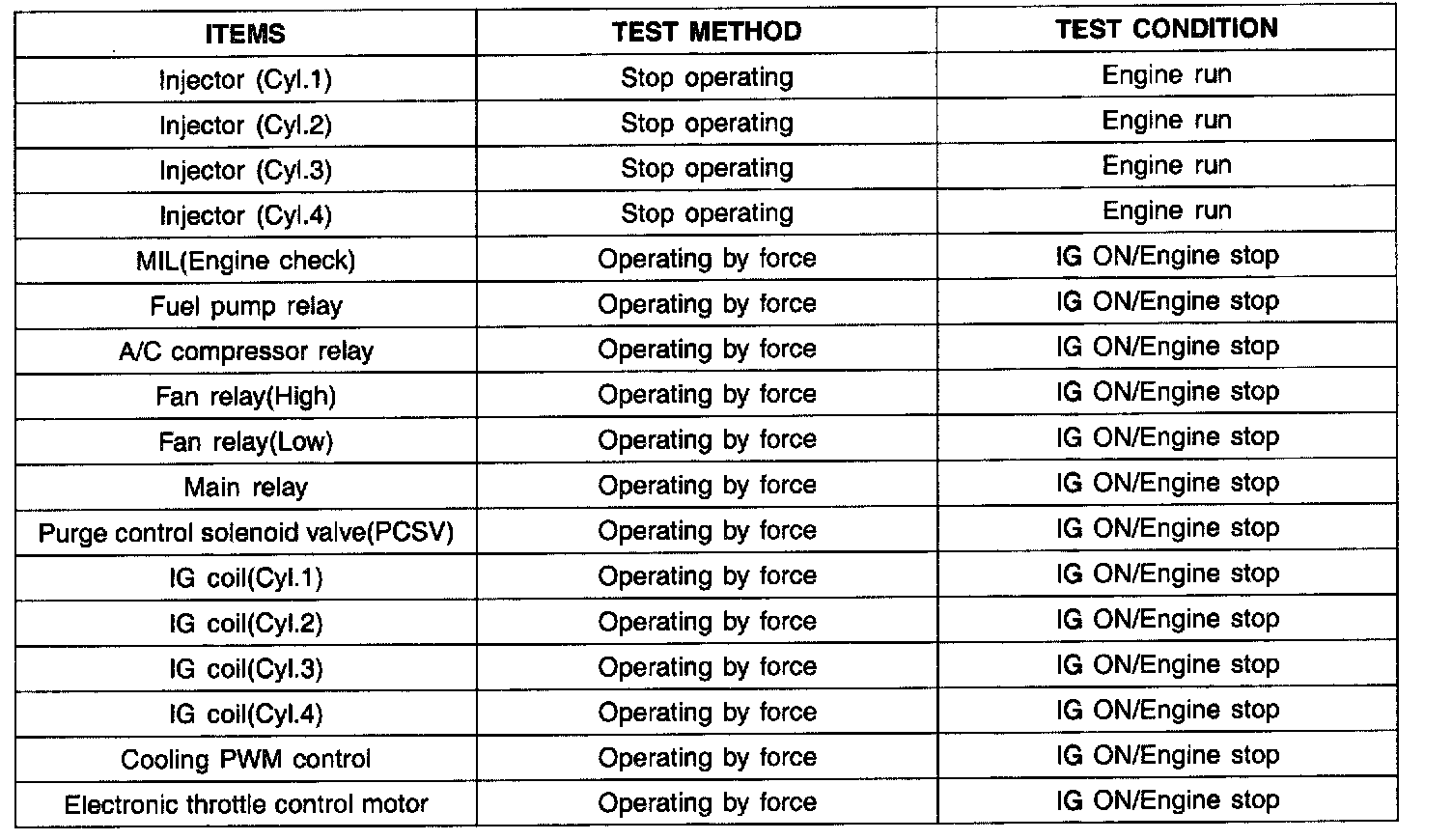 5. According to the display on tester, select the ACTUATOR TEST mode and perform it.