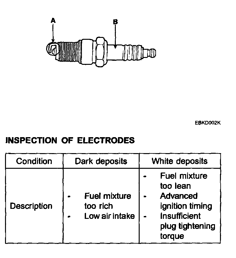4. Inspect the electrodes (A) and ceramic insulator (B).