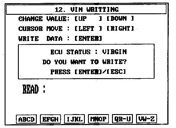 CAUTION: The programmed VIN cannot be changed. When writing the VIN, confirm the VIN carefully.