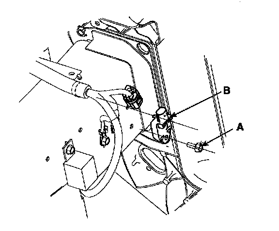 2. Remove the bolt (A) then remove the front impact sensor (B).
