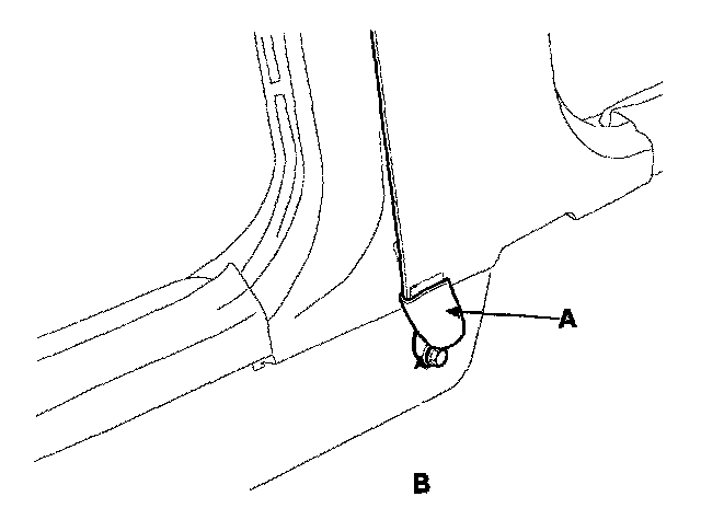 2. After raise the lower anchor cover (A), loosen the lower anchor mounting bolt (B).