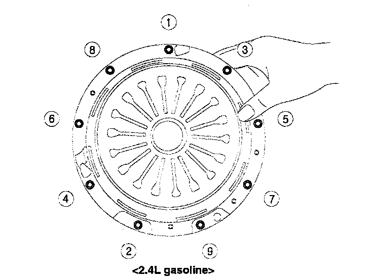 When installing the clutch cover, tighten the bolts in diagonal directions not to be bent or twisted.