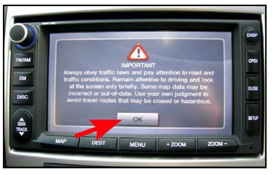 1. Turn key to the Accessory (ACC) position and press the OK button on the screen.