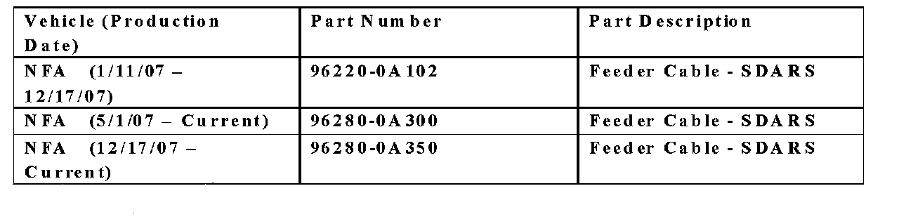 Vehicles Affected - NFA built after 15 Oct 06 until 2 Jan 08 equipped with XM.