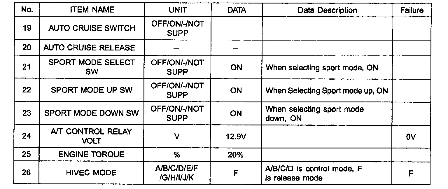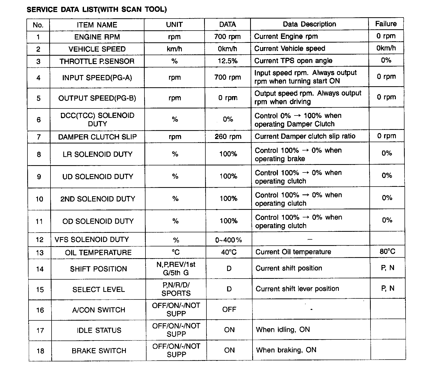 SERVICE DATA LIST (WITH SCAN TOOL)