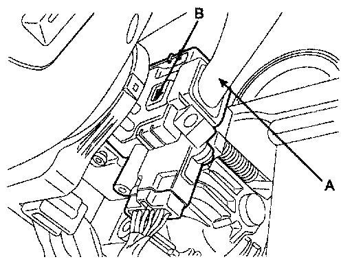 2. Remove the wiper switch (A) by pushing the lock pin (B) after disconnecting the connector.