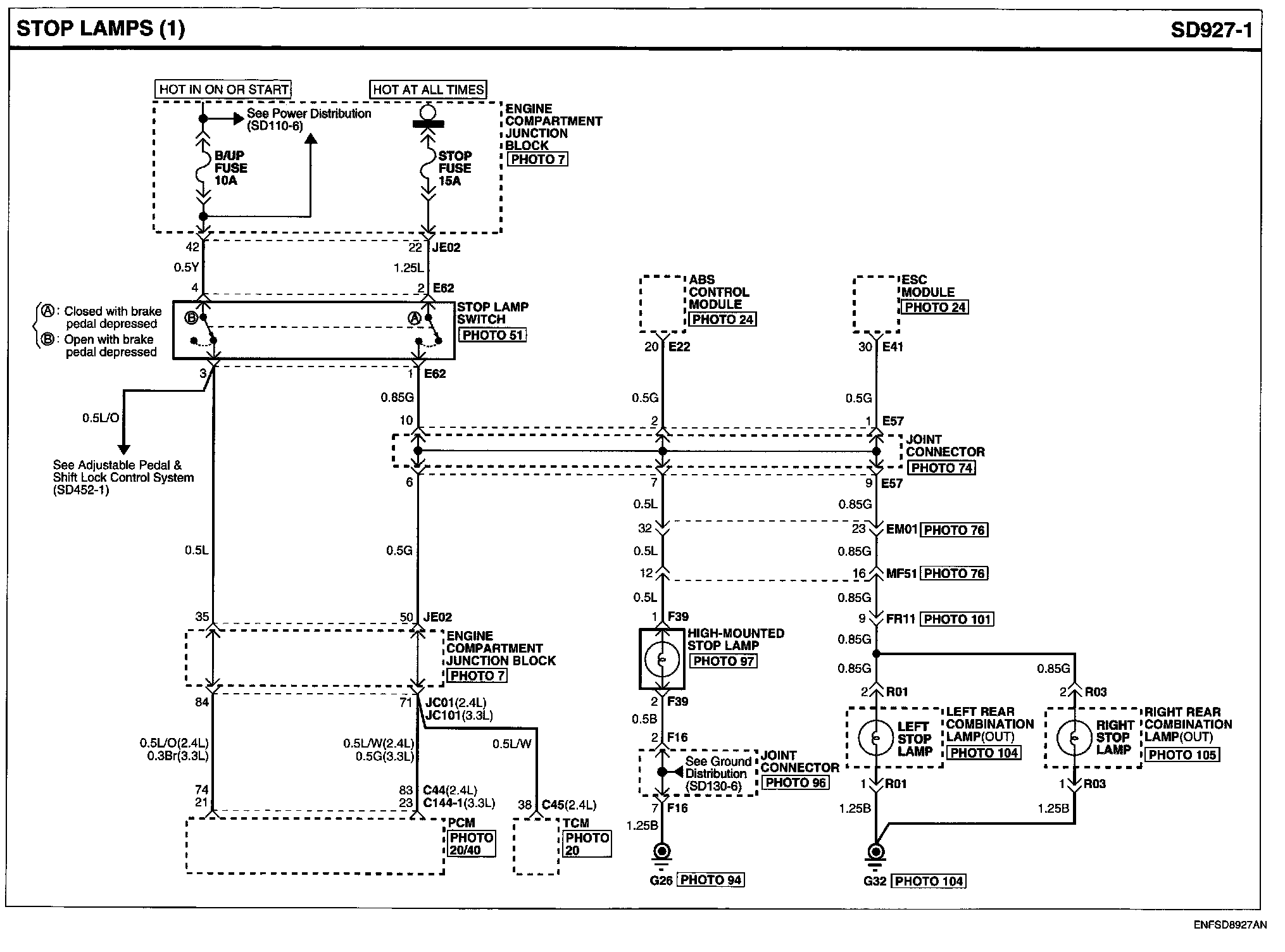 Locations: Location photographs (references to PHOTOS) referred to within these diagrams can be found via the photo number at the vehicle level under Locations by Photo Number. Component Locations