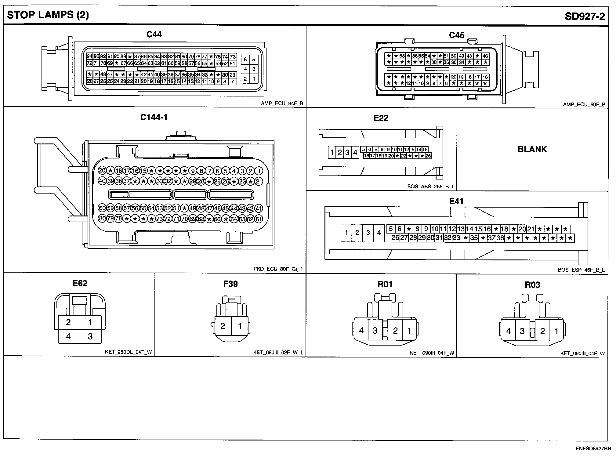 Stop Lamps Connector Pin Outs: