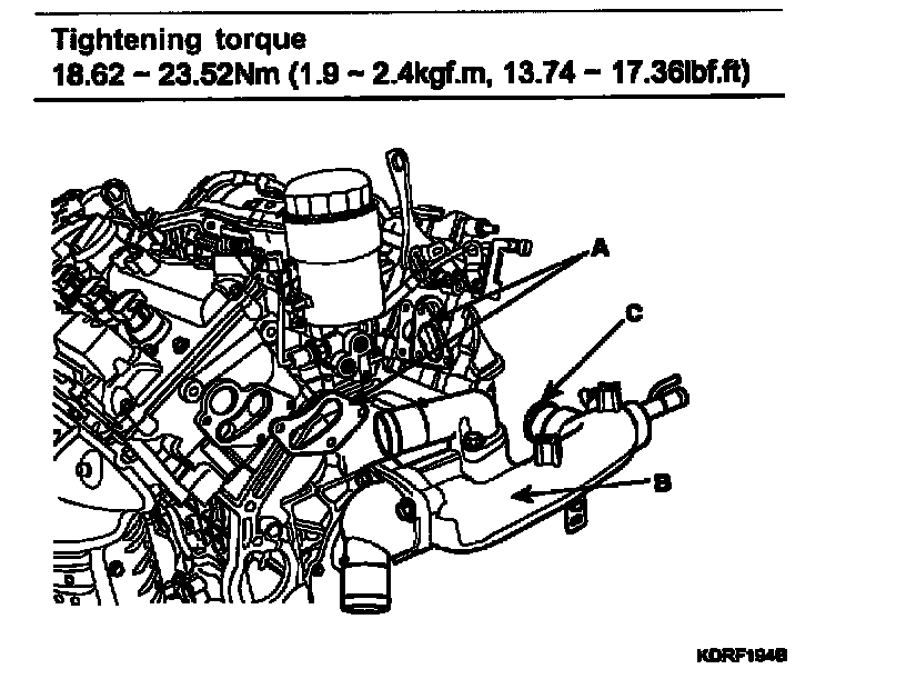 Tightening torque 18.62 - 23.52 Nm (1.9 - 2.4 kgf.m, 13.74 - 17.36 ft. lbs.)