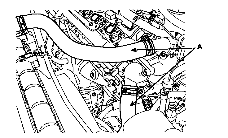 3. Disconnect radiator upper and lower hose (A).