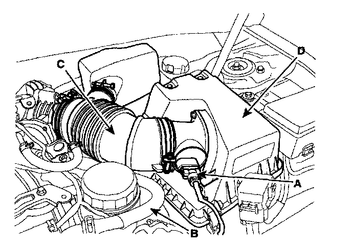 2. Remove air cleaner upper cover (D) and intake hose (c).