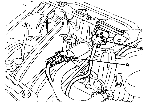 6. Disconnect PCSV connector (A), MAP sensor connector (B) and PCSV hose.