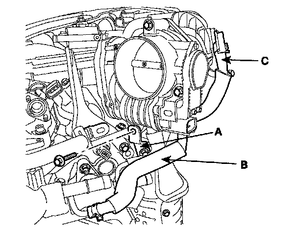 9. Disconnect PCV (c) hose.